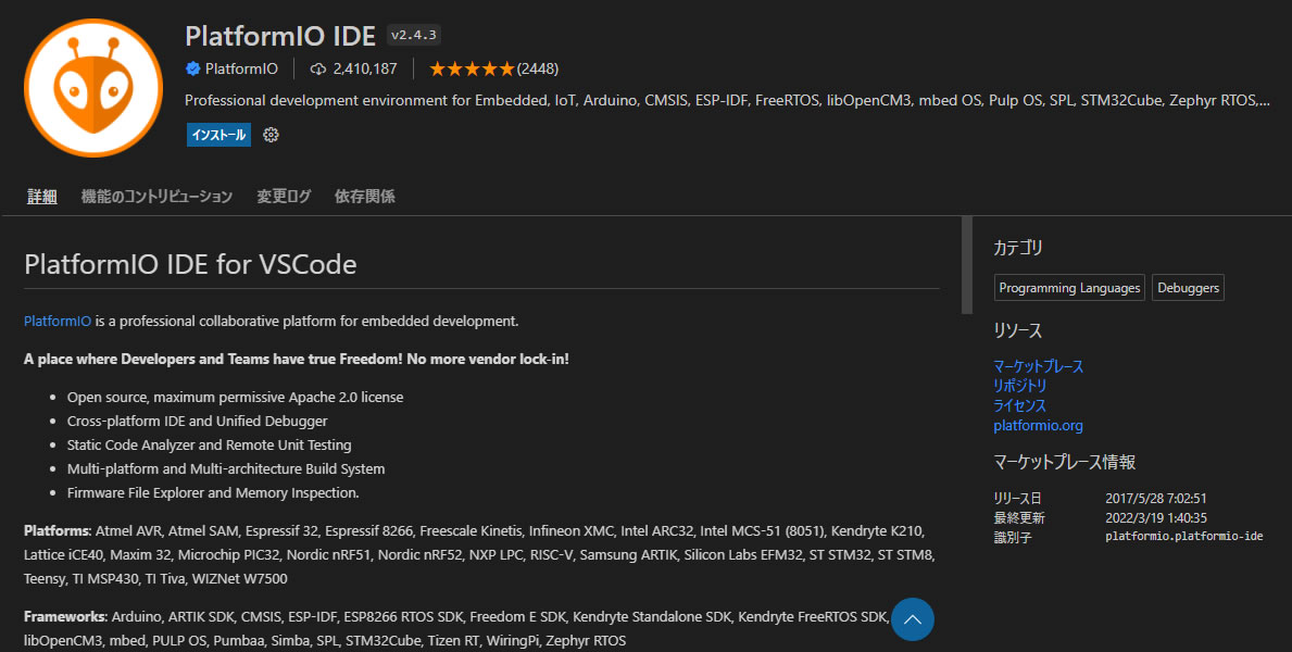 1.Platform IO・・・速くなりそう、インストールしてみる